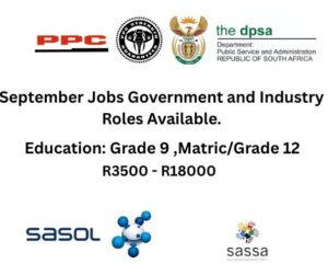 September Jobs Government and Industry Roles Available.